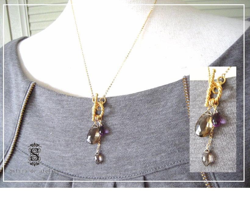 マンテルからチェーンを垂らし、先にスモーキークォーツのマーキスや