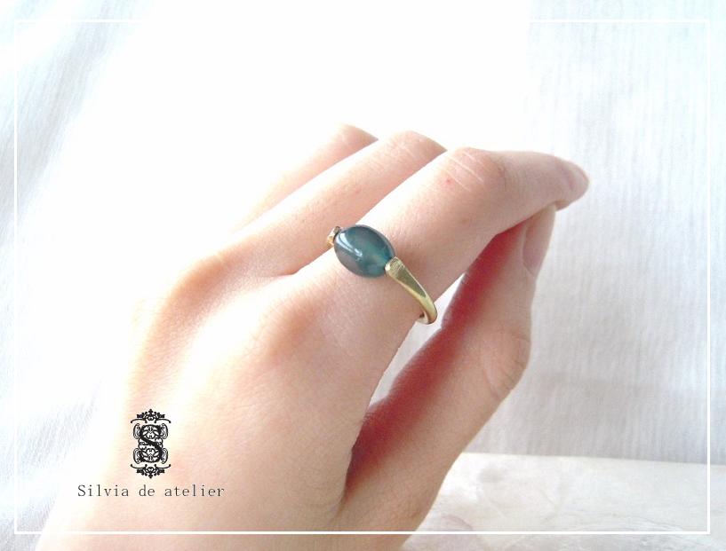 ブルーグリーンアゲート ゴールドリング [G0020]